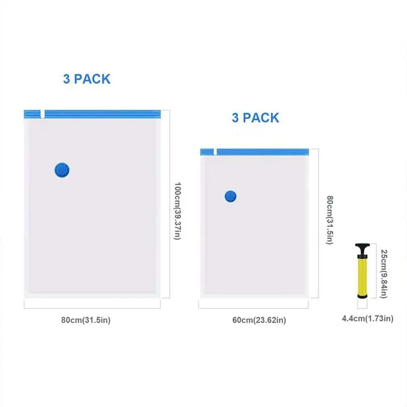 Hot XD-Premium Vacuum Bag 6 Pack Vacuum Bag Clothes include Air Pump for travel Perfect for clothes